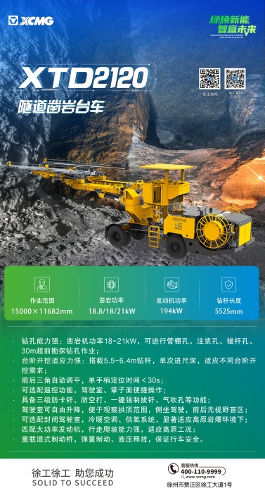 攻巖利器,全能王登場--徐工XTD2120隧道鑿巖臺車