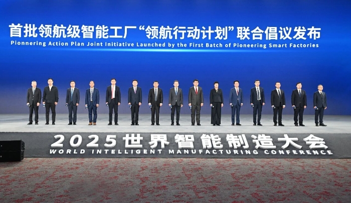 楊東升與首批15家領(lǐng)航級(jí)智能工廠主要負(fù)責(zé)人共同發(fā)布“領(lǐng)航行動(dòng)計(jì)劃”聯(lián)合倡議。