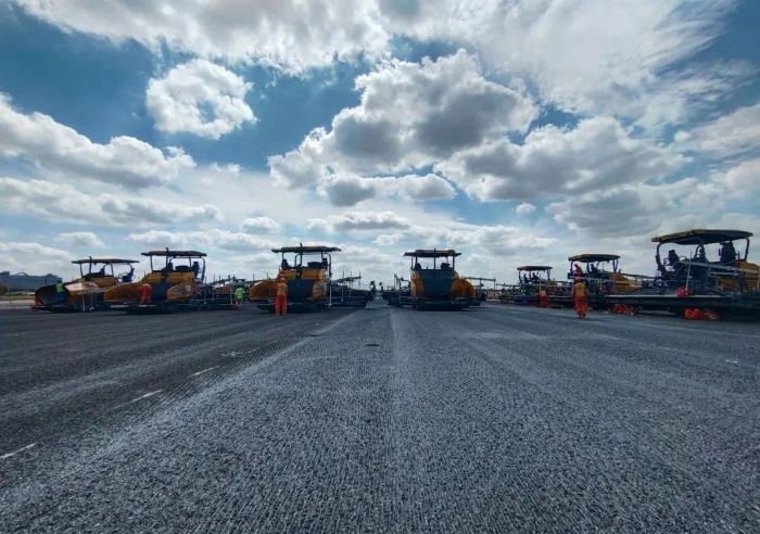 想象一下,航班在西跑道頻繁起降的同時(shí),數(shù)百名施工人員和數(shù)百輛設(shè)備,就在幾百米外忙碌作業(yè)。施工挑戰(zhàn),前所未有的嚴(yán)峻。傳奇,在這短暫的15天一一上演。不過(guò),這傳奇的紙簿上,亦被烙上“徐工金”的身影。徐工成套道路機(jī)械,在此項(xiàng)高難度施工中,迎難而上、挑起重?fù)?dān)。