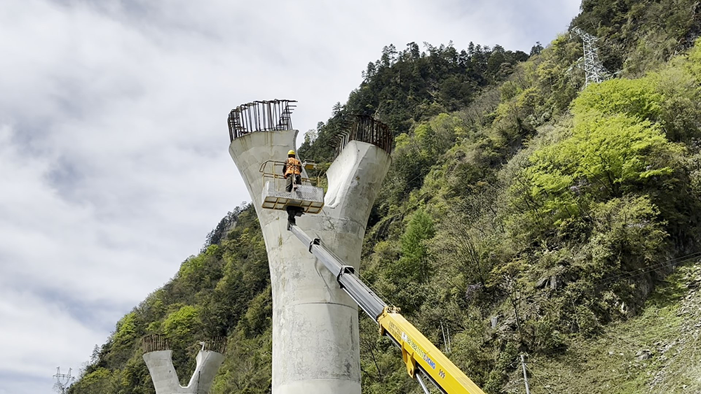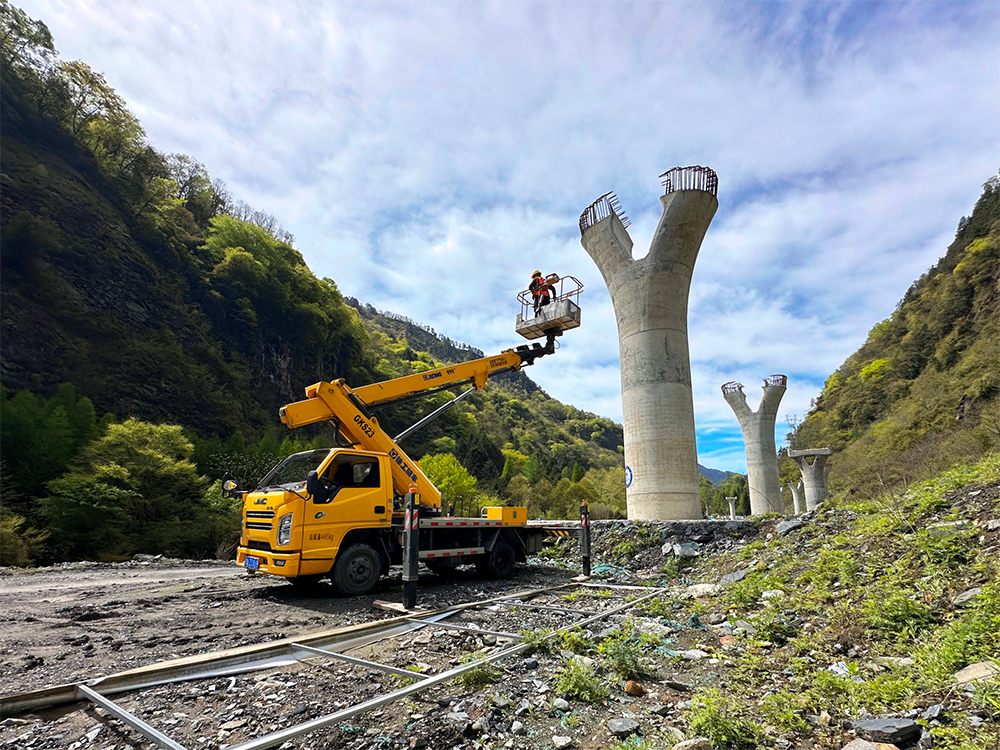 施工環(huán)境惡劣,工期艱巨,徐工GKS23B高空作業(yè)車最大作業(yè)高度22.8m,最大作業(yè)幅度14.6m,采用新型高強度超薄鋼材,完美駕馭川西石礫沙地的施工環(huán)境,憑借穩(wěn)定、高效的舉升性能,出色完成橋墩施工任務,將藍牌產品各項作業(yè)性能發(fā)揮到極致。