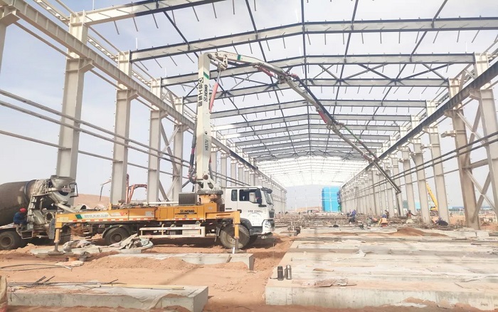 項目中后期以地面作業(yè)為主,鋼結(jié)構(gòu)廠房受限于空間操作,對設(shè)備的動力和靈活提出了較高要求。最小起臂高度僅7.8米的徐工HB37V,靈活的通過性和操控性讓施工作業(yè)提質(zhì)增速,為項目施工破解難題。