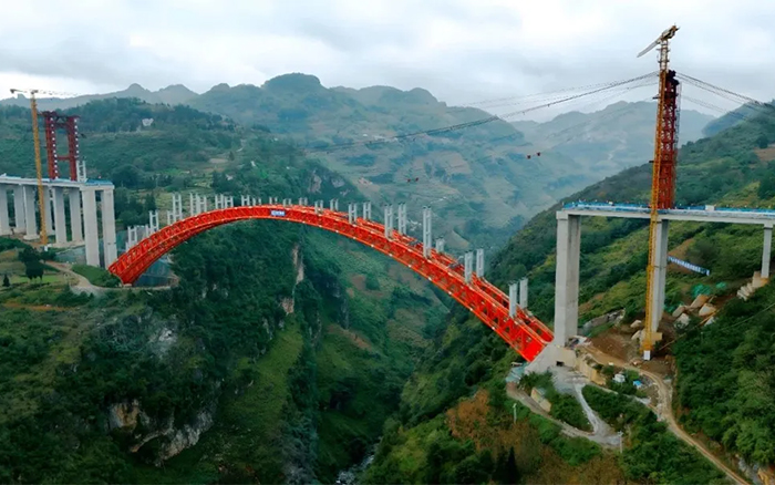 “這座橋工期緊,技術難度大,吊裝過程中構件結構重、空間姿態(tài)調(diào)整難度高,給項目施工帶來了一定困難?!卑姿犹卮髽蝽椖康匿摻Y構負責人毛宗宇說。白水河特大橋主橋采用跨徑340m的上承式鋼管混凝土變截面桁架拱橋,全橋共設計58個吊裝節(jié)段,在百米高空中完成拼裝,而誤差要保持在毫米級,這些為塔機施工帶來了高難度挑戰(zhàn)。