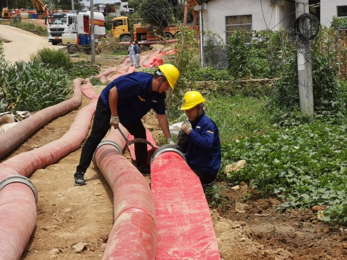面對(duì)嚴(yán)峻的救援形勢(shì),7月12日到達(dá)現(xiàn)場后,救援隊(duì)伍便緊鑼密鼓開始整備,商議排水方案、調(diào)試車輛、鋪設(shè)水帶、檢查管路……為搶抓救援時(shí)間,在制定了嚴(yán)謹(jǐn)細(xì)致的排水方案后,現(xiàn)場采用“兩班倒”的方式,在近40℃的高溫下24小時(shí)不停機(jī)作業(yè)。
