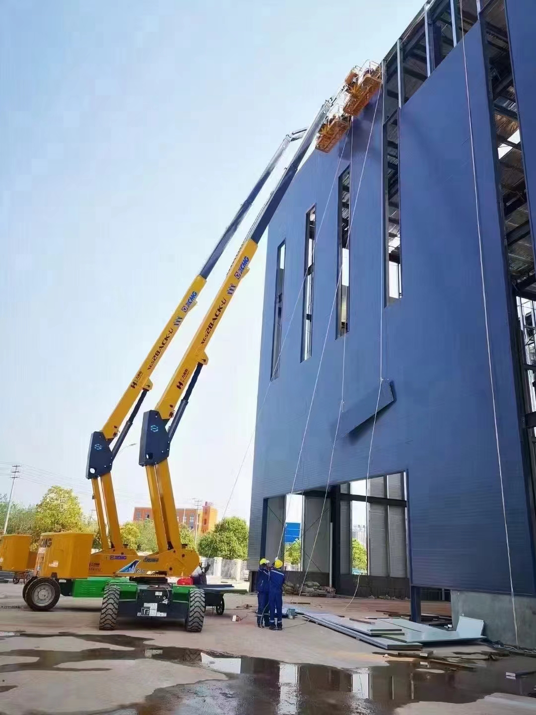 徐工兩臺XGS28ACK-Li正在緊鑼密鼓的進行外立面的安裝工作,憑借其具有自平衡功能的伸展機構(gòu)以及大容量的鋰電池,既保證了施工的安全,又提高了工作效率,獲得了施工方的一致好評。