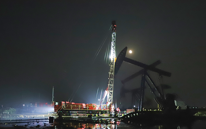 在中國北部某開采油田現(xiàn)場,一場“綠色修井”作業(yè)正如火如荼。20余米的井架高聳佇立,井口流出的油水經(jīng)自動導(dǎo)流裝置流至集油槽中,點滴不落地。