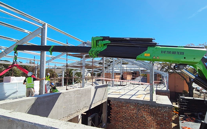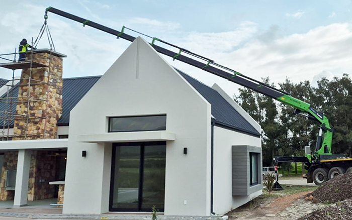 在海外某建筑工地現(xiàn)場可以看到,徐工GSQZ860折疊臂隨車起重機加裝兩節(jié)手動臂,輕松跨越建筑物二樓復雜的鋼結構,完成了高處的物料轉運作業(yè),優(yōu)越跨障能力和穩(wěn)定作業(yè)表現(xiàn)獲得了現(xiàn)場施工人員的認可和好評。