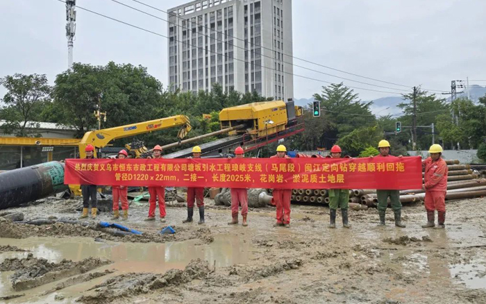 本次工程需穿越閩江,穿越距離長,地層條件復(fù)雜,淤泥與花崗巖交錯(cuò),施工難度系數(shù)大,此前,該項(xiàng)穿越工程因設(shè)備能力等原因停滯長達(dá)4年之久。施工過程中,徐工XZE8200起步回拖最大推拉力達(dá)到370t,最大扭矩90kN·m,全程高效施工,順利完成回拖,贏得了客戶和工程項(xiàng)目部的高度認(rèn)可。