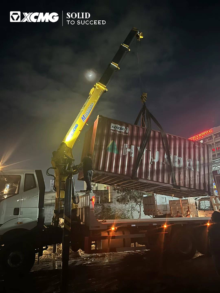 徐工隨車起重機采用了先進的液壓系統(tǒng)與操控技術,具備了高效、穩(wěn)定的工作性能。在集裝箱吊裝轉(zhuǎn)運過程中,起重機憑借強大的起重能力與卓越的穩(wěn)定性,能夠在狹小或復雜的空間內(nèi)進行精確吊裝。