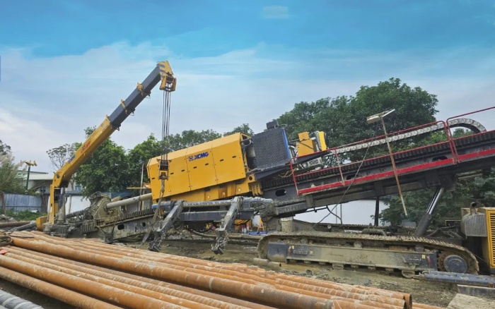 閩江地形環(huán)境復雜,花崗巖、淤泥交錯,項目停滯四年之久,施工難度極大。就在項目面臨“困境無法突破”之際,徐工XZE8200電驅(qū)水平定向鉆機臨危受命,在有利穿越路線被破壞的情況下,重新開辟路線。