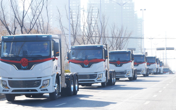 “我宣布,徐工新能源牽引車(chē)百臺(tái)交付暨千臺(tái)簽約儀式圓滿(mǎn)禮成,發(fā)車(chē)!”徐工集團(tuán)副總經(jīng)理,徐工汽車(chē)總經(jīng)理、黨委書(shū)記夏泳泳一聲令下,百臺(tái)徐工新能源牽引車(chē)隊(duì)列整齊、邁步向前,為更多區(qū)域“雙碳”目標(biāo)實(shí)現(xiàn)作出更大貢獻(xiàn)。