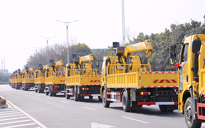一輛輛隨車起重機緩緩駛出工廠,它們將奔赴各個城市建設(shè)項目現(xiàn)場,成為城市建設(shè)的得力 “干將”。這批隨車起重機的投入使用,將為城市建設(shè)帶來顯著的推動作用。在城市基礎(chǔ)設(shè)施建設(shè)中,它們能夠高效地搬運和安裝大型構(gòu)件,加快工程進(jìn)度;在城市改造項目里,靈活的操作性能讓其在狹窄空間內(nèi)也能施展拳腳,助力城市面貌煥然一新。