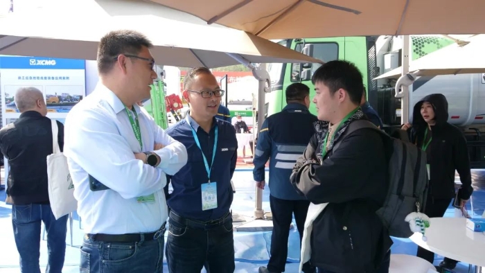 徐工新能源產(chǎn)品在展會的精彩亮相,吸引了大批來賓前往參觀咨詢。徐工環(huán)境相關(guān)領(lǐng)導(dǎo)陪同協(xié)會會長陳永生一行在徐工展位參觀交流,向其詳細(xì)介紹了徐工參展的新產(chǎn)品的特色亮點及產(chǎn)品優(yōu)勢,并表示徐工將不斷推進新能源產(chǎn)品技術(shù)研發(fā),用更多優(yōu)質(zhì)產(chǎn)品搶占高端市場,全面推進產(chǎn)業(yè)高端化、智能化、綠色化、服務(wù)化、國際化“五化”轉(zhuǎn)型升級。