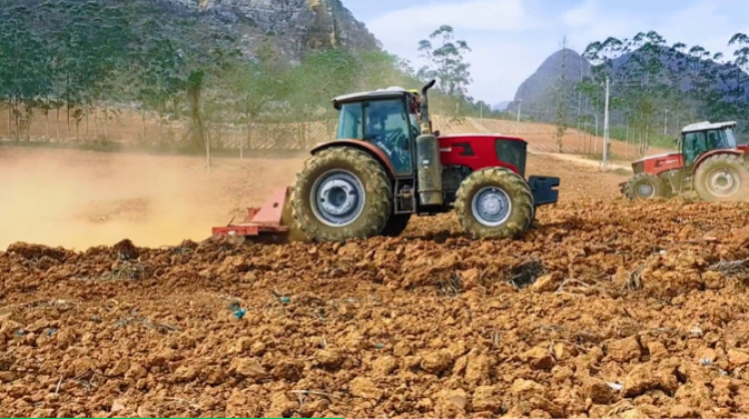 在完成耕深約50厘米的犁地作業(yè)后,牽引著3米幅寬的重型旋耕機(jī)穩(wěn)穩(wěn)駛過蔗田,對(duì)25厘米耕作層進(jìn)行精細(xì)化碎土整地,有效改善板結(jié)土壤結(jié)構(gòu)。