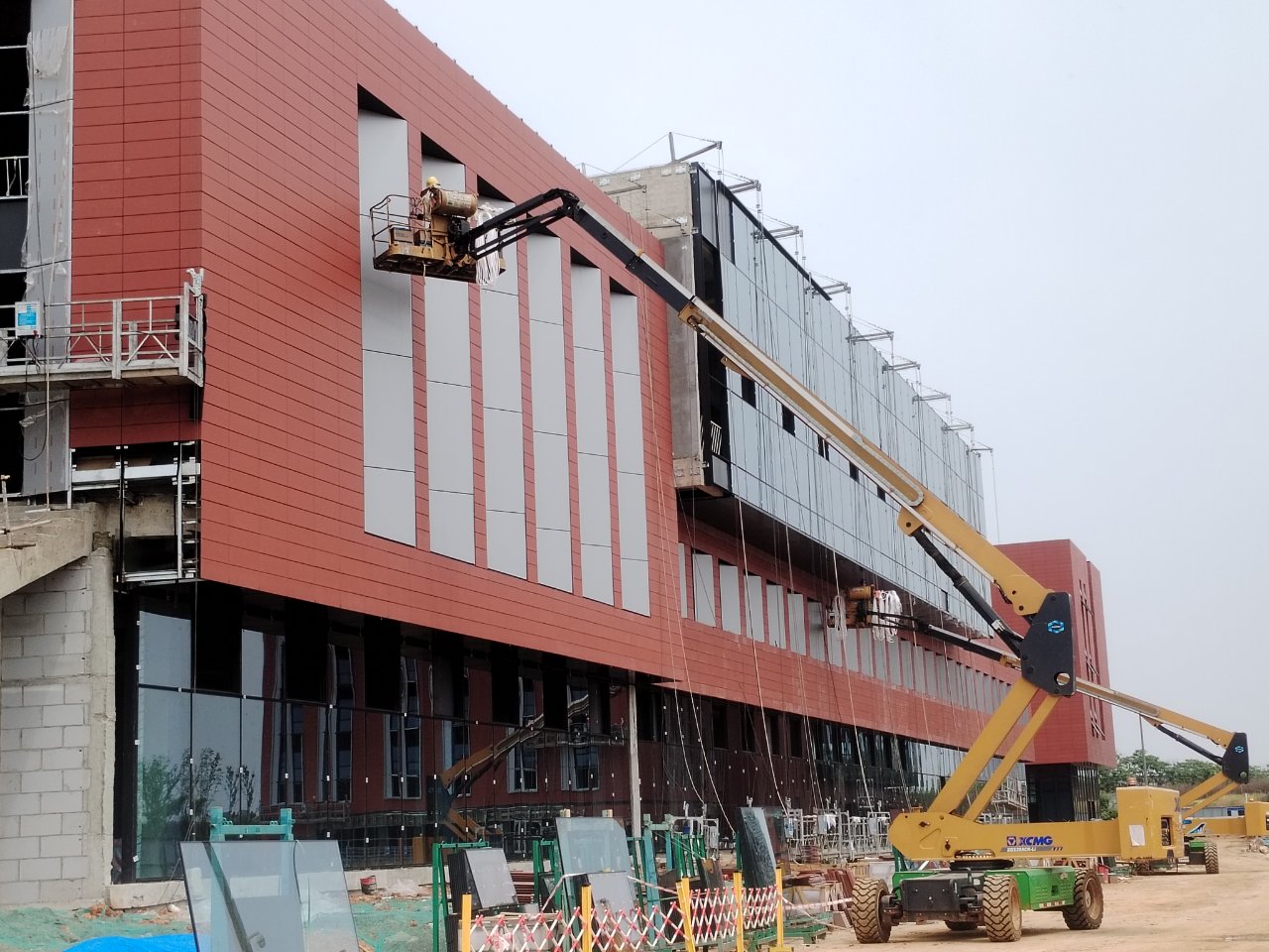 在武漢經(jīng)開區(qū)中國(guó)電子云研發(fā)基地一期項(xiàng)目中,徐工2臺(tái)XGS28ACK-Li電動(dòng)直臂式高空作業(yè)平臺(tái)以“零排放、高精度、智能化”的核心優(yōu)勢(shì),為數(shù)據(jù)中心鋼結(jié)構(gòu)安裝及外立面部署提供了高效解決方案。該項(xiàng)目作為國(guó)內(nèi)信創(chuàng)云領(lǐng)域的標(biāo)志性工程,總建筑面積達(dá)30萬平方米,聚焦人工智能、云平臺(tái)等前沿技術(shù),對(duì)施工環(huán)境潔凈度、能源效率及安全管理提出嚴(yán)苛要求。