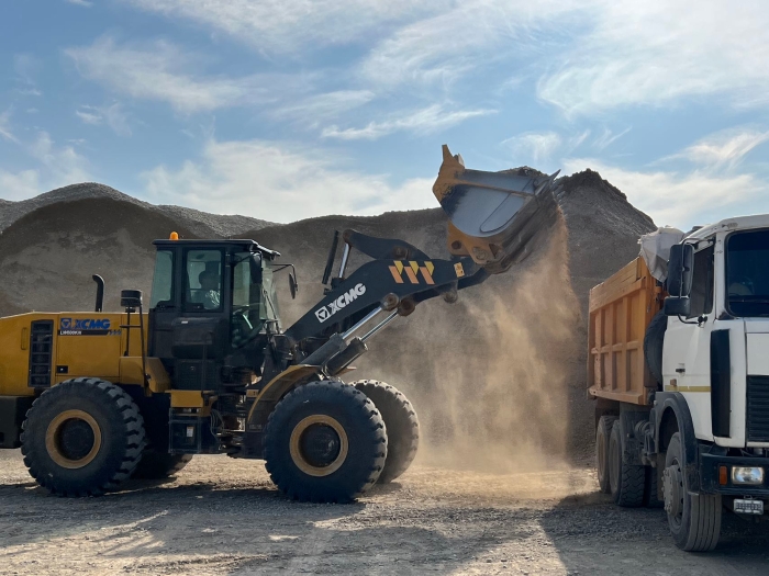 西亞某礦山,一臺(tái)LW600KN正高速運(yùn)轉(zhuǎn),將滿載的一鏟鏟剛開采出的砂石料裝車發(fā)往建設(shè)現(xiàn)場(chǎng),助力當(dāng)?shù)亟ㄔO(shè)。