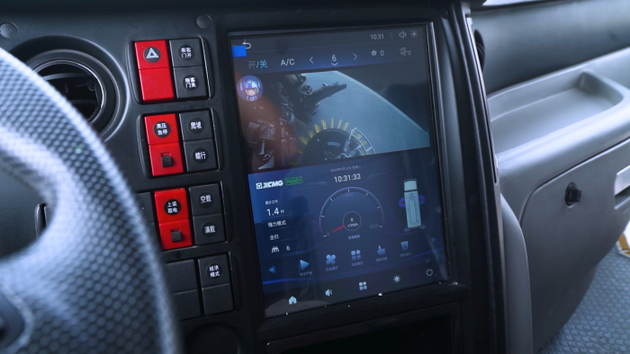 走進駕駛室,集成式12.1寸觸控大屏絕對是一大亮點。操控、顯示、監(jiān)控功能融為一體,既不占用額外空間,又不會遮擋視野,駕駛員操作時無需轉(zhuǎn)身,上下車也毫無阻礙。