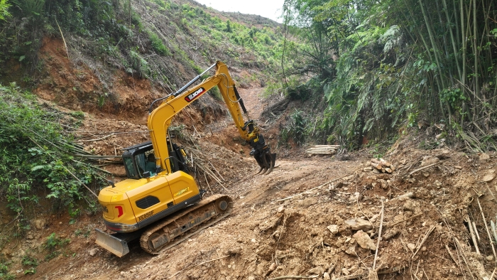 在鄭俊回鄉(xiāng)之前,父輩大多是靠人工作業(yè),僅有的設備就是幾臺非常低端的輪挖,也就能夾裝木材,偶爾修修路的話,平整度、壓實度都很差,大車走幾趟就壞了,遇到稍微陡一點的坡也上不去,嚴重影響了作業(yè)進度。