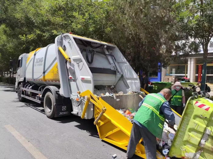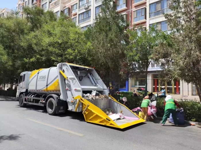 瓜州縣城區(qū)日均產(chǎn)生生活垃圾超120噸,其中60%集中于老舊小區(qū)與商業(yè)街區(qū)。徐工壓縮車采用雙向壓縮技術(shù),通過“刮板-滑板”聯(lián)動(dòng)系統(tǒng)實(shí)現(xiàn)垃圾的破碎、壓縮與填裝一體化作業(yè)。在淵泉鎮(zhèn)郵電巷社區(qū),設(shè)備單次裝載僅需14秒,同等車廂容積下垃圾裝載量提升20%,輕松應(yīng)對(duì)高峰時(shí)段的桶裝、袋裝垃圾集中收運(yùn)需求。