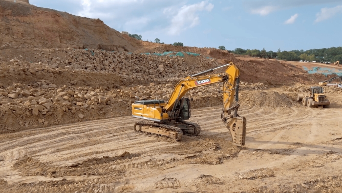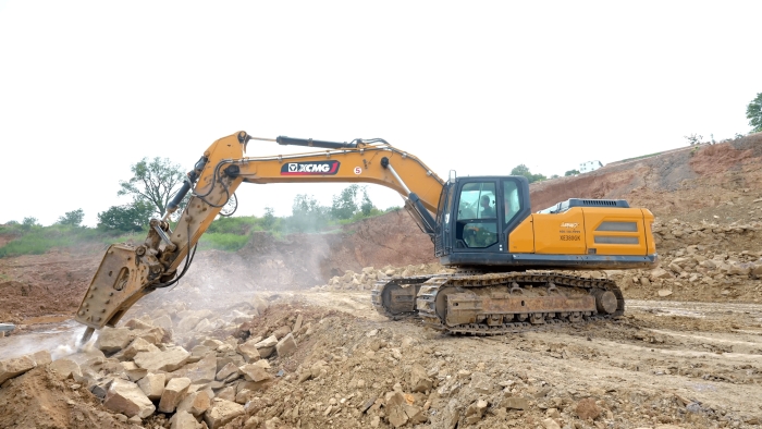 徐工挖掘機(jī)打破碎很有勁,駕駛舒適。我們在這個項目上主要做巨石破碎工作,徐工的設(shè)備在回轉(zhuǎn)、破碎等動作上都表現(xiàn)的很優(yōu)秀,屬具更換很便捷,底盤比其他品牌的同噸位設(shè)備都要穩(wěn)。