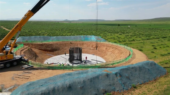 此次進(jìn)行的是風(fēng)電基礎(chǔ)吊裝,重達(dá)17噸的鉚盤穩(wěn)落在基坑,214根鉚桿密集插裝,每一根都必須精準(zhǔn)插入孔位。