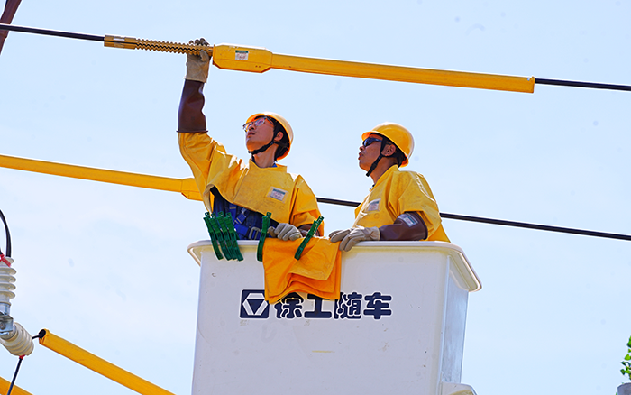 徐工 GKJH22A 絕緣斗臂車在此次作業(yè)中優(yōu)勢盡顯。其新型工作斗智能液壓發(fā)電技術(shù),極大提升了發(fā)電可靠性,降低了液壓溫升,延長了系統(tǒng)壽命,發(fā)電噪聲的降低也為作業(yè)環(huán)境減少了干擾,讓工作人員能更清晰地溝通協(xié)作,連續(xù)作業(yè)時間的延長則有力保障了施工進(jìn)度。