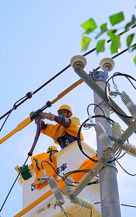 工作人員借助絕緣斗臂車,快速、精準(zhǔn)地抵達(dá)作業(yè)位置。他們身著厚重的絕緣服,有條不紊地開展更換變壓器工作。盡管汗水早已濕透衣衫,但大家的眼神中透露出專注與堅定?!敖^緣服里像蒸桑拿,好在設(shè)備噪聲小、連續(xù)干活不‘掉鏈子’,不然真扛不住這高溫持久戰(zhàn)?!?一位作業(yè)人員抹著額頭的汗說。