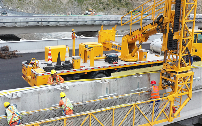 復雜地質(zhì)構(gòu)造曾讓傳統(tǒng)施工因落石、涌水屢屢受阻,而徐工橋檢車的桁架能輕松跨越數(shù)米寬裂隙區(qū),讓 “卡脖子” 地帶變 “加速帶”。