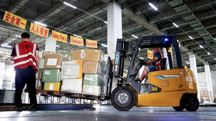 機(jī)場(chǎng)前置倉作為貨物進(jìn)入航空運(yùn)輸鏈路的首站,承擔(dān)著集中收貨、分揀、暫存等任務(wù),具有作業(yè)繁忙、吞吐量巨大、連續(xù)工作時(shí)間長(zhǎng)的鮮明特征。面對(duì)日均數(shù)千噸的貨物周轉(zhuǎn)量,徐工定制化部署新能源叉車集群,匹配不同型號(hào)的產(chǎn)品來滿足搬運(yùn)需求。