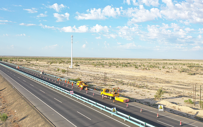 它們穩(wěn)穩(wěn)扎在對向車道,徐工金車身在周遭環(huán)境中格外顯眼,警示燈不知疲倦地閃爍著,像兩尊盡職的崗哨,將施工區(qū)域與潛在危險清晰分隔。當(dāng)?shù)厥姓块T視施工安全為首位,選在車流量少的時段施工,將徐工防撞緩沖車部署在后方。有了它們在旁,施工區(qū)域仿佛被筑起一道堅固的防護墻,為施工筑起了一道可靠的安全防線。