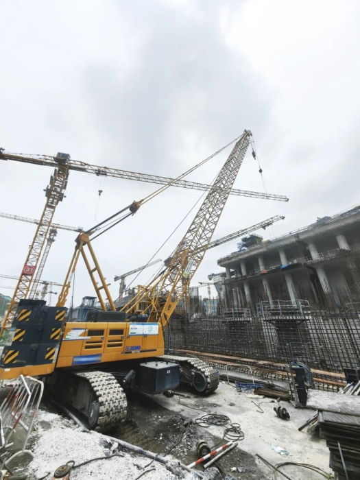 在如此高難度的施工環(huán)境中,XGC110A展現(xiàn)出的卓越穩(wěn)定性和微動(dòng)性,成為項(xiàng)目攻堅(jiān)克難的核心利器。其精準(zhǔn)的操控猶如“穿針引線”,在鋼筋森林的方寸之地游刃有余,有效保障了多工序協(xié)同推進(jìn),為工程高效推進(jìn)提供了堅(jiān)實(shí)保障。