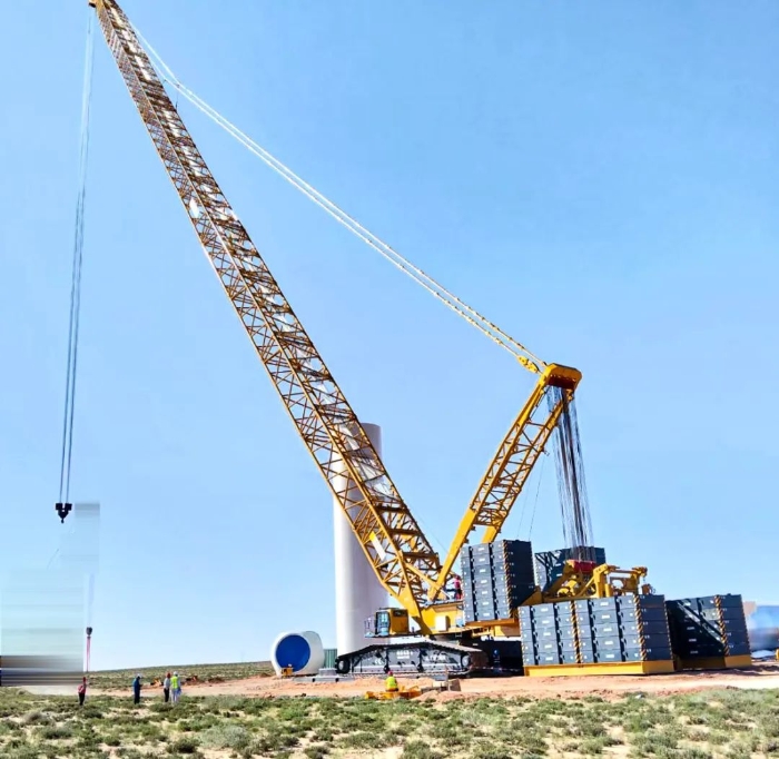 2025年5月,與河北采用195+5m超起工況完成首臺(tái)185m風(fēng)機(jī)吊裝;