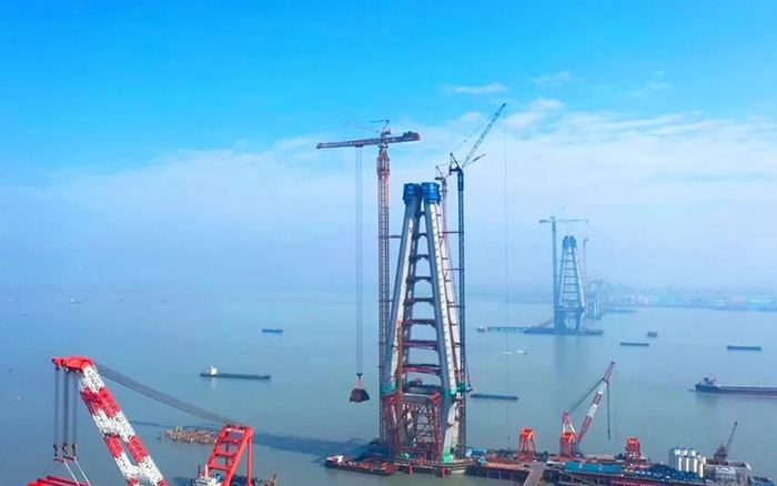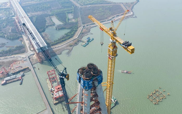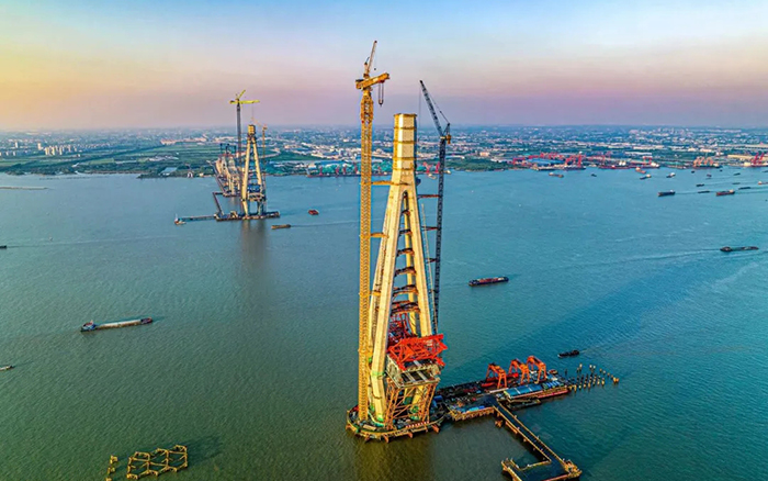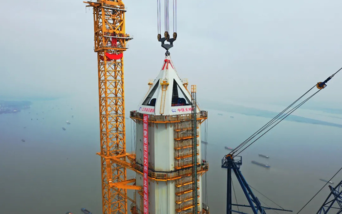 高350米的常泰長(zhǎng)江大橋南主塔順利封頂