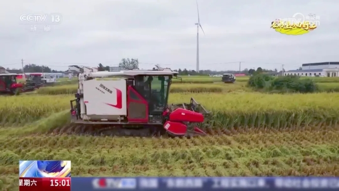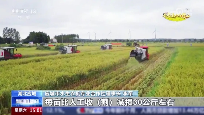 9月20日,中央電視臺新聞頻道《新聞直播間》“在希望的田野上”欄目將鏡頭對準(zhǔn)湖北應(yīng)城,報(bào)道了八臺徐工XR720履帶式谷物聯(lián)合收獲機(jī)在當(dāng)?shù)亻_展大規(guī)模糯稻收割的豐收盛景——履帶滾滾,金黃的稻穗迅速被吞入機(jī)器,頃刻間完成收割、脫粒、清選等一系列作業(yè),顆顆飽滿的籽粒穩(wěn)穩(wěn)落入糧倉。