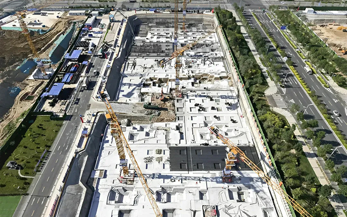 在雄安新區(qū)啟動區(qū)金融島核心地帶,XGT7022等十余臺徐工塔吊如同鋼鐵巨人般矗立在建設(shè)現(xiàn)場,與明珠湖對岸的國貿(mào)中心建筑群遙相呼應(yīng),它們正以毫米級精度吊裝著總重量超萬噸的鋼結(jié)構(gòu)模塊。