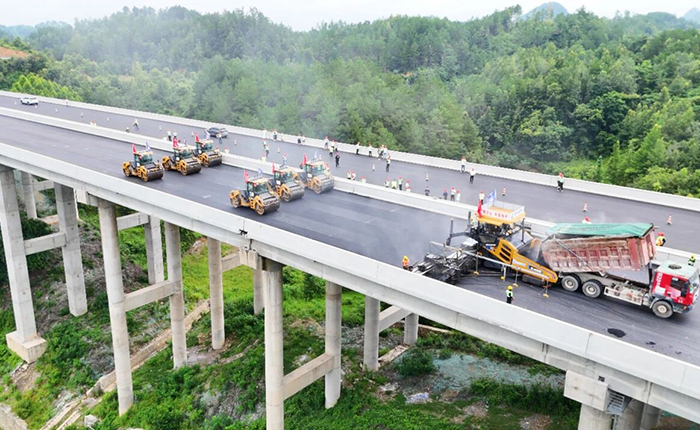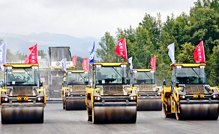 智慧施工管理平臺實時呈現(xiàn)碾壓軌跡、變速曲線、施工速度及溫度數(shù)據(jù)。攤鋪機高效輸分料系統(tǒng)適配超寬幅作業(yè),壓路機深入結(jié)構(gòu)層實現(xiàn)全維度壓實,晝夜不間斷施工。