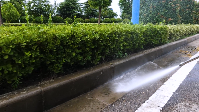 人行道與綠化帶邊緣:通過側(cè)噴桿與手持噴槍的組合操作,洗掃車可精準(zhǔn)清理路緣石立面、綠化帶縫隙中的積塵,實(shí)現(xiàn)“無(wú)死角”保潔。
