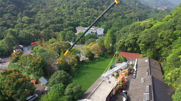 此次影視燈架的吊裝,對(duì)于身懷絕技的XCT130G8-1來說,更像是一次從容的“小試牛刀”。設(shè)備前一天抵達(dá),第二天即刻投入實(shí)戰(zhàn)。此次任務(wù)要求將燈架長時(shí)間懸停,設(shè)備的穩(wěn)定性和微動(dòng)性至關(guān)重要。