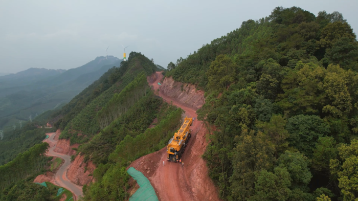 在廣西崇山峻嶺中,徐工XCA4000輪式起重機(jī)憑借“6+2雙動(dòng)力”驅(qū)動(dòng)系統(tǒng),以402.5噸整車重量完成重載轉(zhuǎn)場,在陡峭狹窄的山地中穩(wěn)健行進(jìn)。