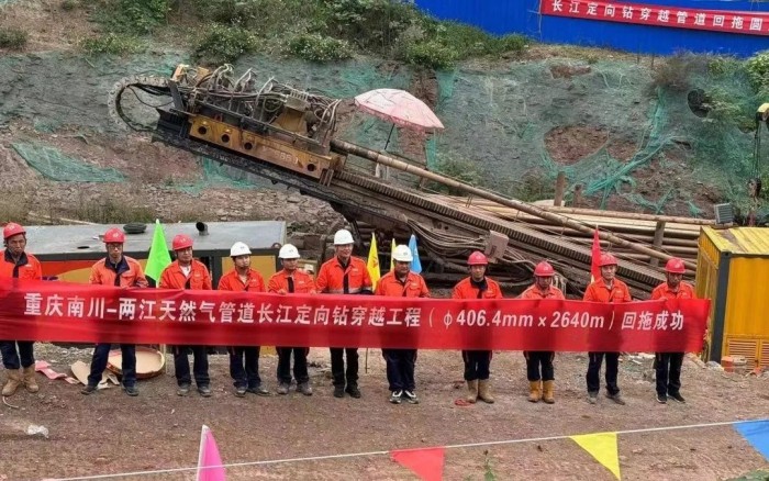 工程橫跨長(zhǎng)江,施工路段地表層由粉質(zhì)粘土覆蓋,下層土質(zhì)為泥巖砂巖互層,地質(zhì)復(fù)雜。定向鉆穿越段采用D406.4×10.0 L415M直縫埋弧焊鋼管,穿越長(zhǎng)度為2640米,深度達(dá)143米,穿越管道與長(zhǎng)江底部最小間距為84.66米。施工設(shè)備的作業(yè)能力、工作效率都面臨非常大的考驗(yàn)。