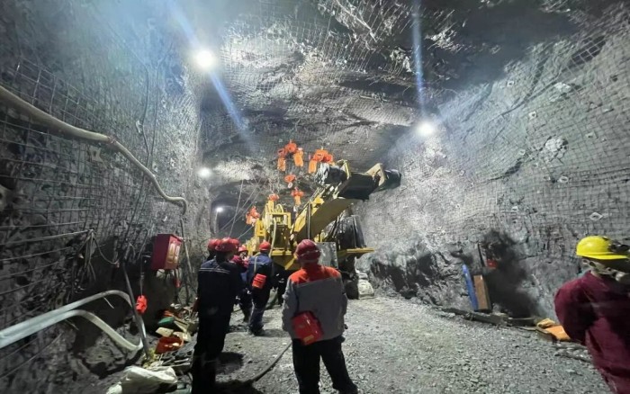 徐工XTR7/360掘進(jìn)機(jī)在礦下展開(kāi)了一場(chǎng)硬碰硬的較量,平均兩小時(shí)進(jìn)尺1m的施工效率,引來(lái)現(xiàn)場(chǎng)采礦工作人員的圍觀。