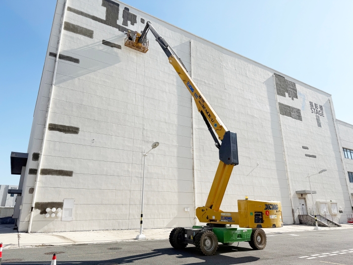 近日,在青島東方影都攝影基地,徐工XGS32ACK-Li高空作業(yè)平臺出色完成了多個大型攝影棚的墻面維護任務。