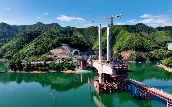 太平湖特大橋作為池黃高鐵全線唯一控制性工程,全長926.1米,采用雙線三塔矮塔斜拉橋,兩個主跨均為228米,是目前國內跨度最大的高速鐵路多塔矮塔斜拉橋。