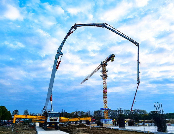該設(shè)備依托71.1米超長(zhǎng)臂架,實(shí)現(xiàn)廣域覆蓋與厘米級(jí)精準(zhǔn)布料,180m3/h的輸送能力保障大方量澆筑需求。