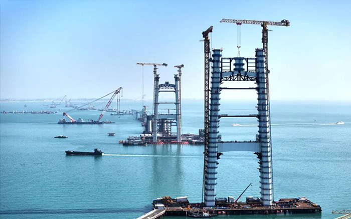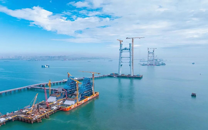 此次主塔建設任務面臨 “海面精準吊裝”與“復雜氣象環(huán)境” 的雙重考驗: