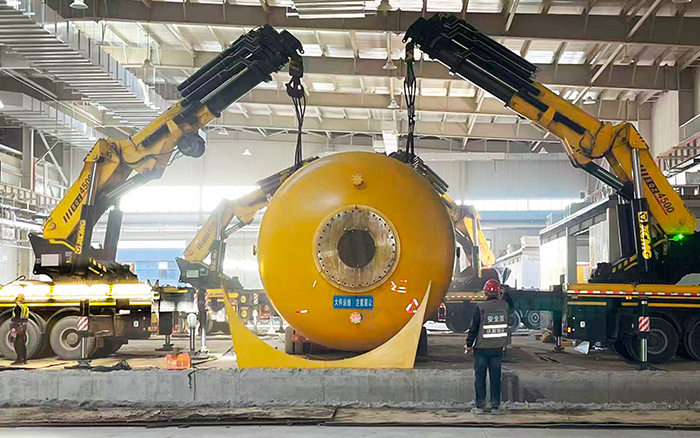 廠房車間層高受限、作業(yè)空間局促,給超大型設(shè)備轉(zhuǎn)運(yùn)帶來極大挑戰(zhàn)。而 SQZ4500C 僅 3400mm 的外形高度,恰好適配低矮工況,無需拆改廠房即可靈活穿梭。其 6 節(jié)伸縮臂(四節(jié)雙推)最長(zhǎng)可達(dá) 16.2m,具備強(qiáng)大的帶載伸縮能力,配合精準(zhǔn)比例控制液壓系統(tǒng),四機(jī)協(xié)同實(shí)現(xiàn)毫米級(jí)走位,讓笨重的高溫爐在狹窄通道中平穩(wěn)前移。