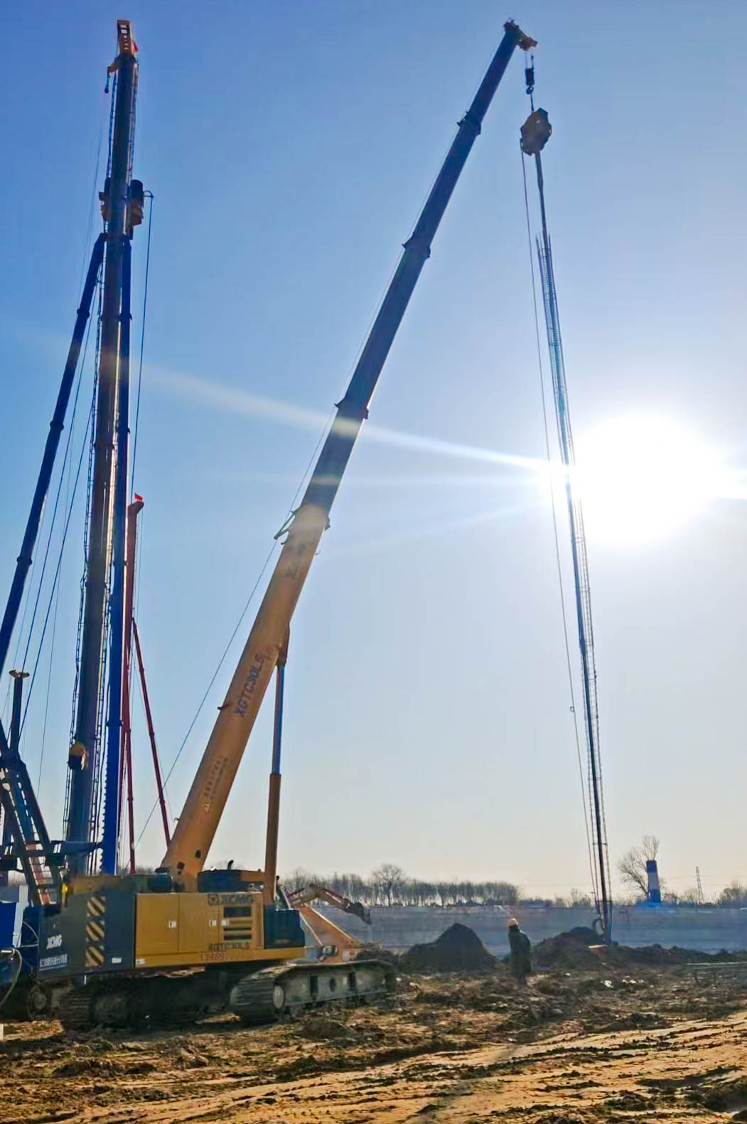 近日,北京某重點(diǎn)基礎(chǔ)施工現(xiàn)場,一臺(tái)徐工XGTC30L5(30噸級(jí))伸縮臂履帶起重機(jī)伸展出36米的主臂,在12米工作幅度上,將一根3噸重的鋼筋籠精準(zhǔn)植入預(yù)定樁孔。