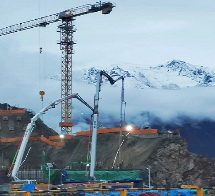 連續(xù)泵送14小時后,峽谷開始刮起側(cè)風,臂架末端出現(xiàn)輕微擺動。在第三代智能臂架技術(shù)加持下,臂架上下振幅<130mm,左右<100mm,保證平穩(wěn)澆筑。