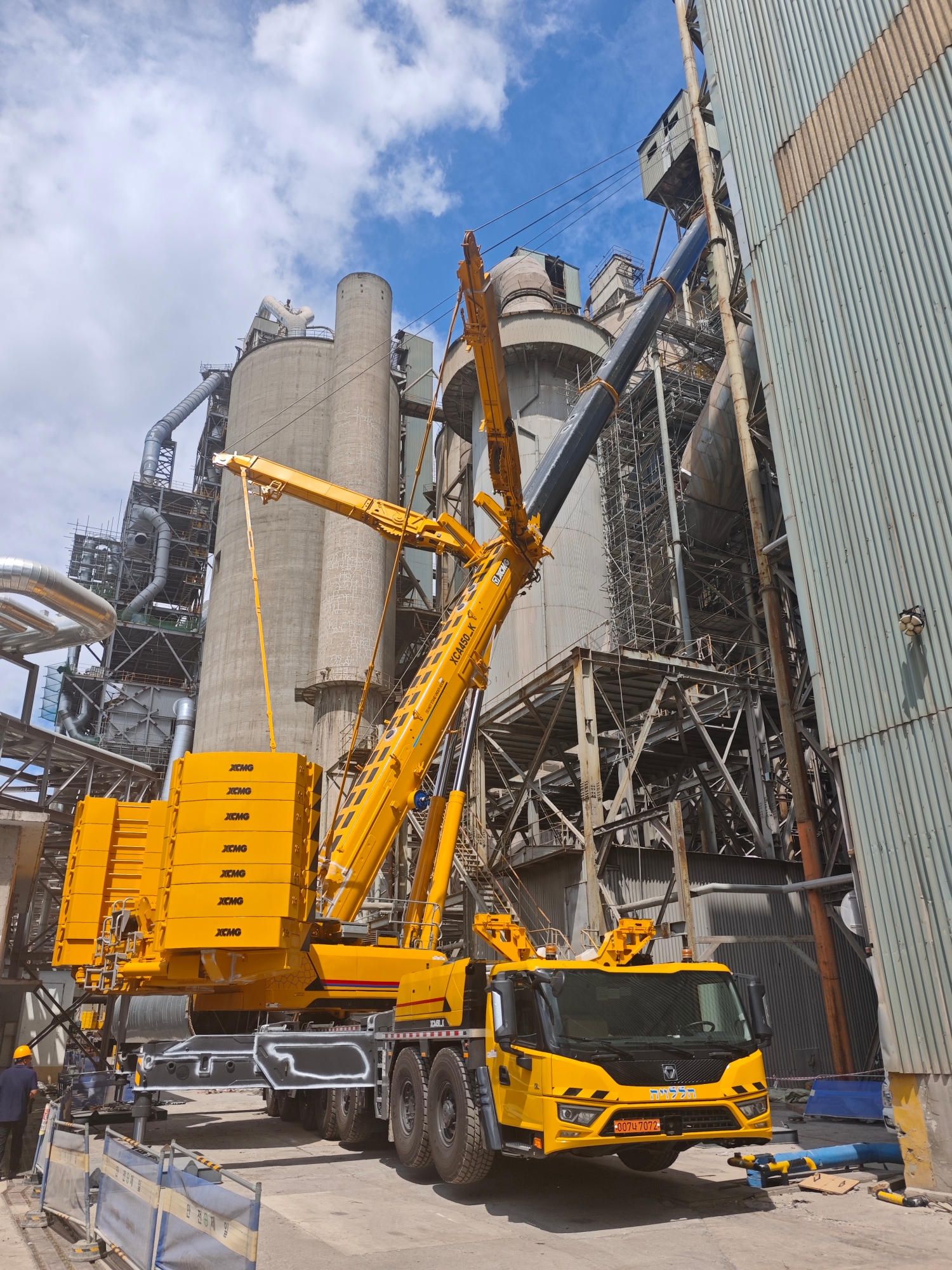 在現(xiàn)代大型水泥廠的建設(shè)與升級(jí)改造中,設(shè)備安裝往往是決定工程進(jìn)度的關(guān)鍵環(huán)節(jié)。近日,在某現(xiàn)代化水泥廠施工現(xiàn)場,一臺(tái)徐工XCA450_K全地面起重機(jī)憑借其卓越性能,成功完成了一項(xiàng)超起工況下的高難度吊裝任務(wù),為項(xiàng)目的順利推進(jìn)提供了堅(jiān)實(shí)保障。