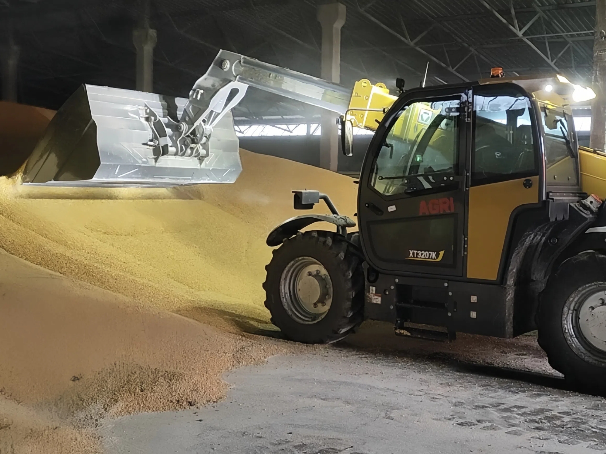面對糧食轉(zhuǎn)運的緊迫需求,XT3207K以“鏟+裝”一體化作業(yè)流程一氣呵成,僅用一小時就完成了多斗糧食向貨車的轉(zhuǎn)運任務(wù),高效推進(jìn)糧儲調(diào)運工作。設(shè)備搭載靈活的轉(zhuǎn)向系統(tǒng),在倉庫狹窄的作業(yè)空間內(nèi)行駛自如,精準(zhǔn)完成糧食鏟取、轉(zhuǎn)運、裝卸的全流程操作。