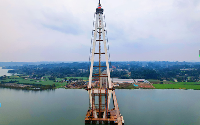 漢陽湖岷江特大橋主塔順利封頂